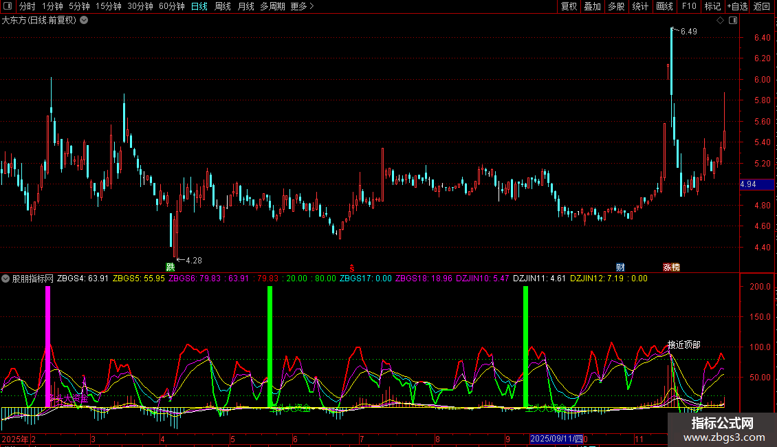 DRAWTEXT(DZJIN7=10 AND FILTER(DZJIN7=10,5),ZBGS6,'接近底部'),COLORYELLOW;