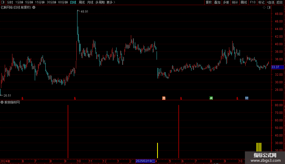 预警:STICKLINE(大底>0 AND C<O,30,10,1,0),COLORYELLOW;