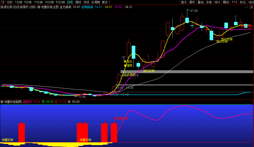 通过组合多条均价线识别趋势动向。当短期均线上穿中长期均线,且股价突破主力成本线时,会发出“大牛股”或“正式启动”信号。同时结合量价分析,在成交量萎缩至低位且价格呈现特定反转结构时,提示“地价反转”机会。