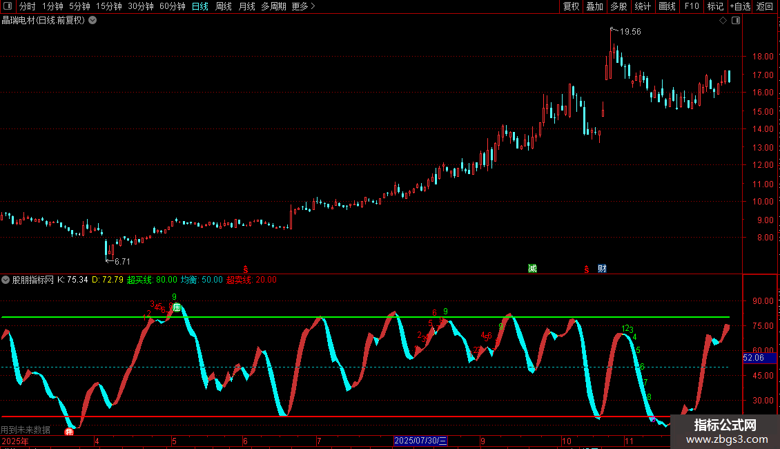 1. 当K/D线突破80超买线并出现绿色箭头时,注意阶段性风险