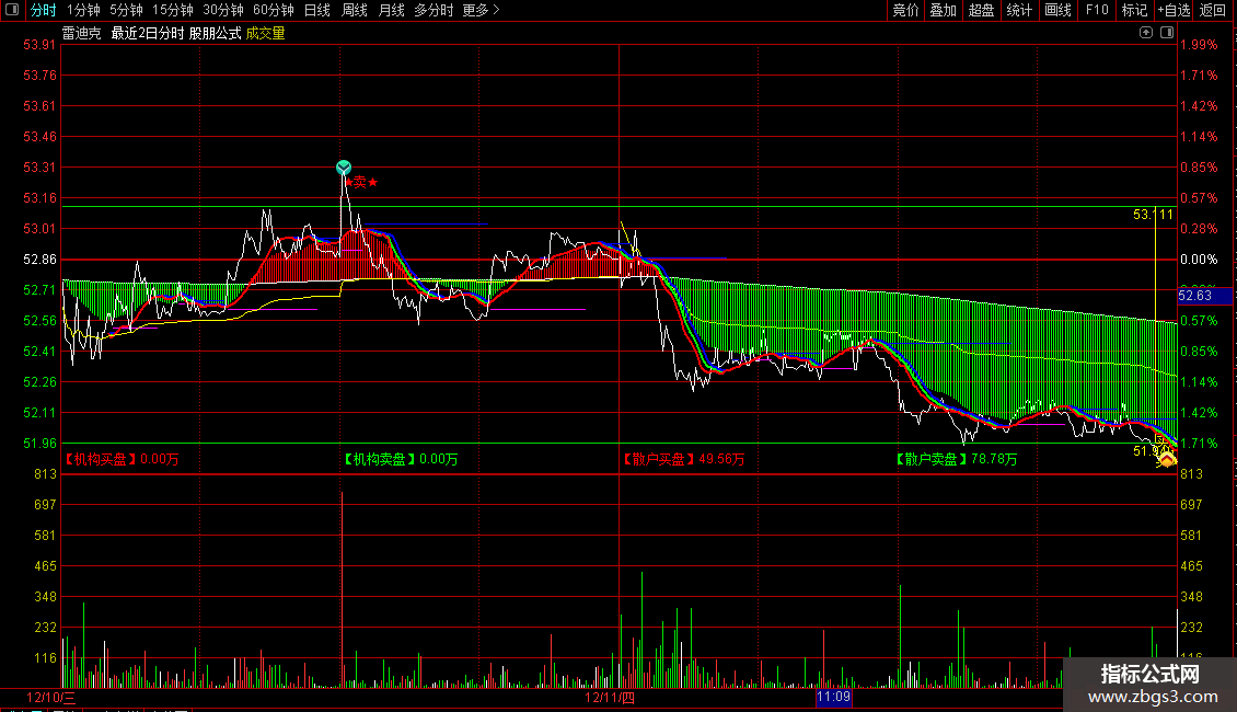 1. 为简化看盘,在分时图叠加MACD指标和分时趋势线