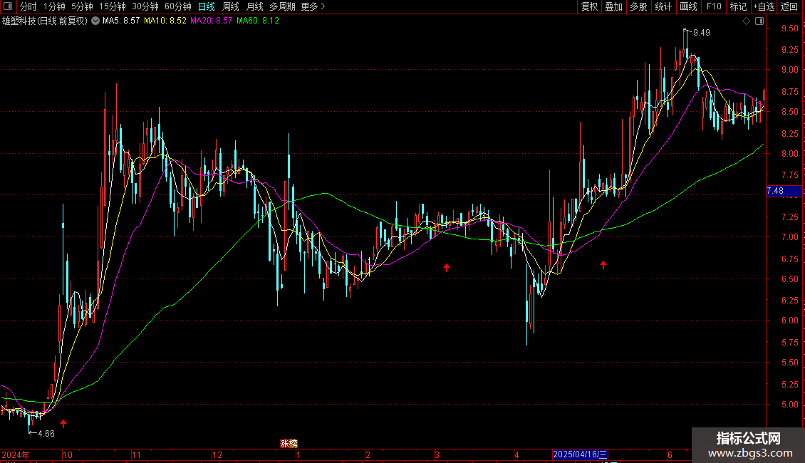 5日均线,10日均线,20日均线,白黄紫均线多头排列