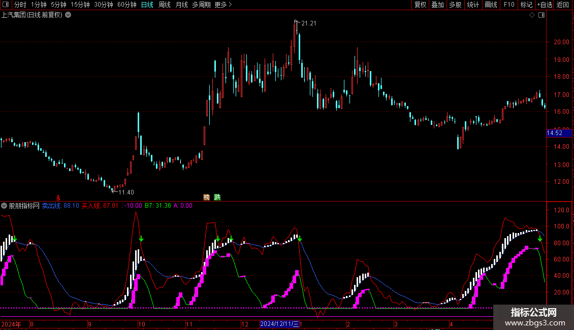 持有:STICKLINE(REF(B7,1)<B7,B7,REF(B7,1),5,0),COLORMAGENTA;