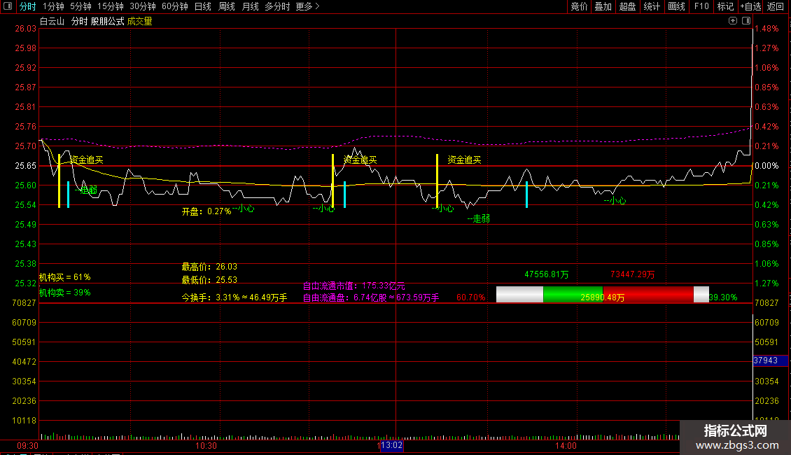 分时资金流主图指标源码如下: