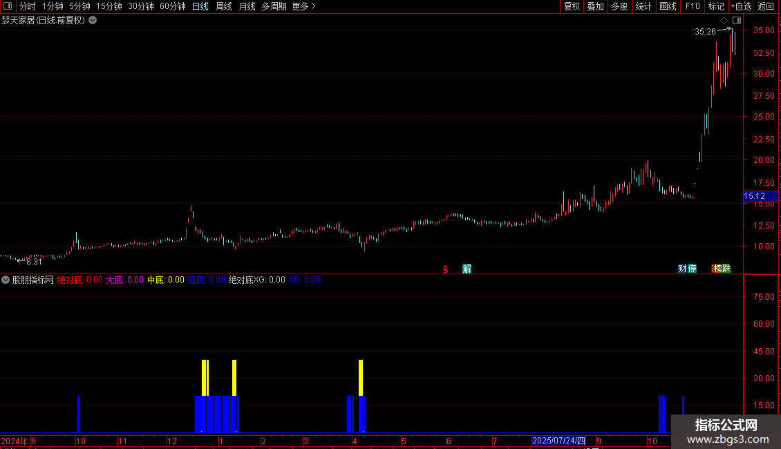 XG:(REF(绝对底,1)>0 OR REF(大底,1)>0) AND 大底=0 AND 中底=0;