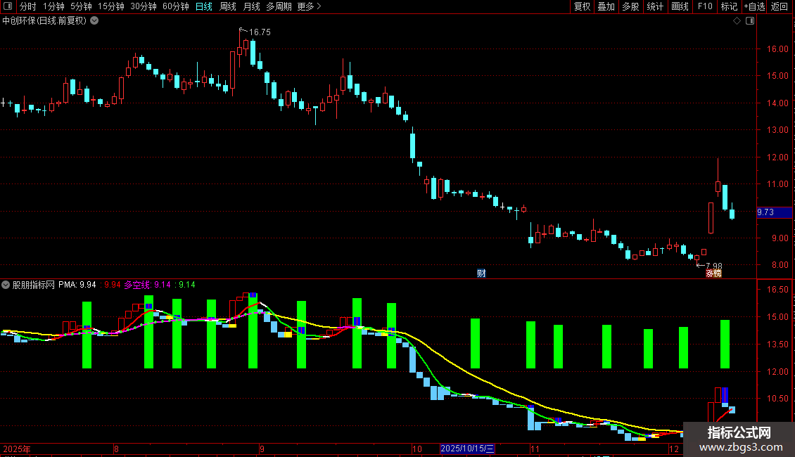 多空线:(20*X+19*REF(X,1)+18*REF(X,2)+17*REF(X,3)+16*REF(X,4)+15*REF(X,5)+14*REF(X,6)