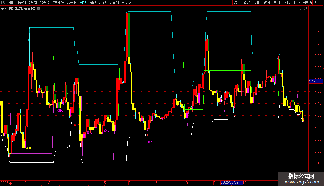 同花顺〖楚河分界〗压力支撑指标,主图 源码分享
