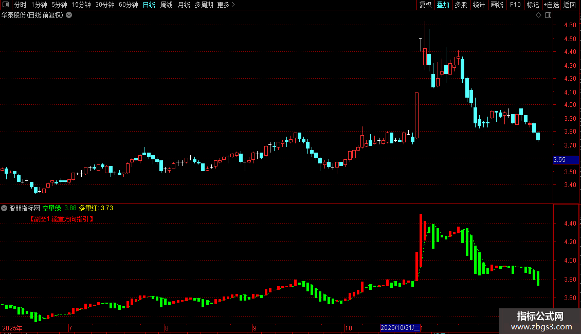 1. 在副图加载指标,观察柱状线颜色切换。