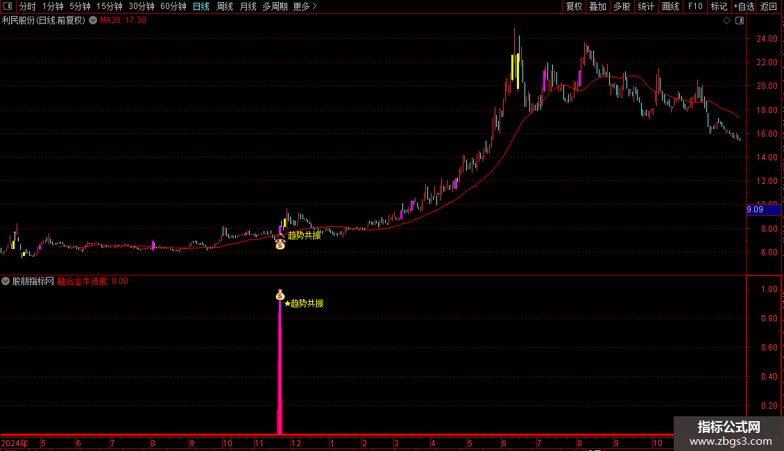 核心用途:筛选「量价共振 + 趋势突破 + 主力筹码异动」的强势股,通过主图可视化标注提示交易信号。