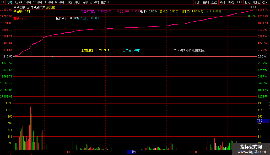 封成比:=DYNAINFO(58)/DYNAINFO(8),COLORGREEN;