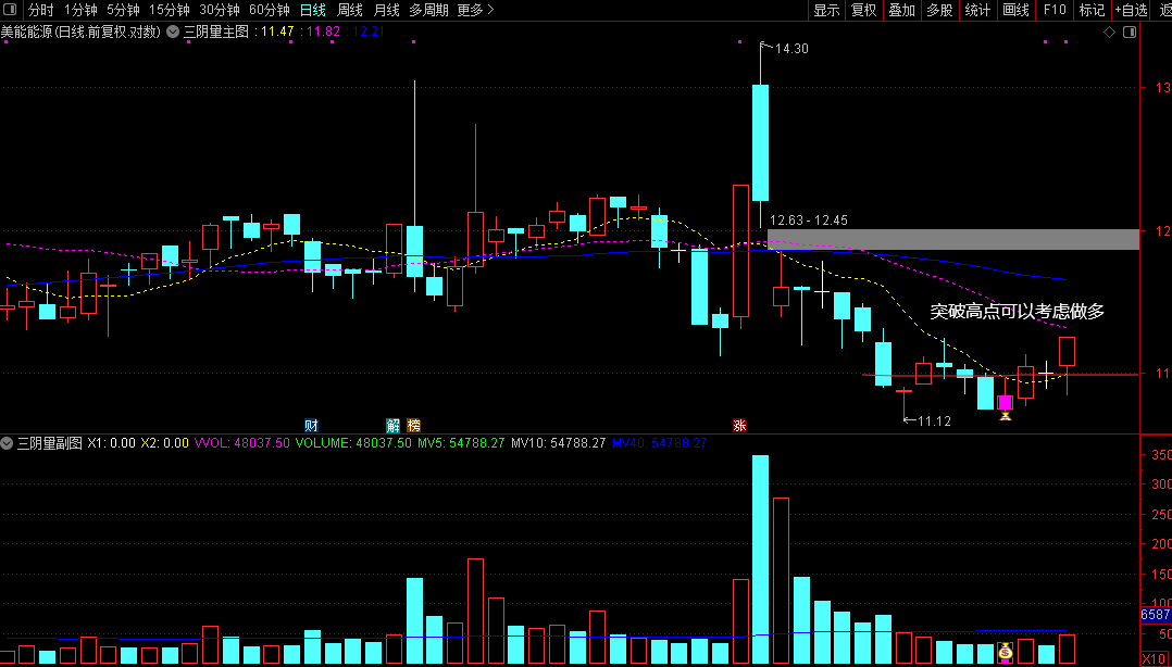 2. 信号出现后,可等待股价突破近期高点时,再考虑进行多头操作。