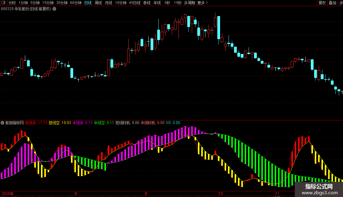 中长期:=100*(C-LLV(L,20))/(HHV(C,20)-LLV(L,20)),COLORMAGENTA;