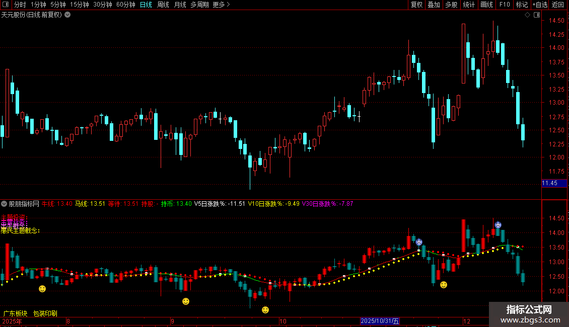 马线:MA(牛线,5),COLORYELLOW,LINETHICK4,POINTDOT;