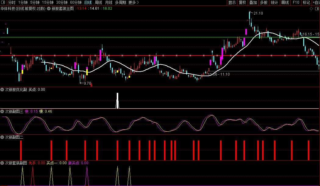 本指标套装专为次新股短线交易设计,包含一套主图、四套附图及四套选股指标,共10项分析工具。信号经过优化处理,出现频率适中,适用于通达信软件的手机端与电脑端。