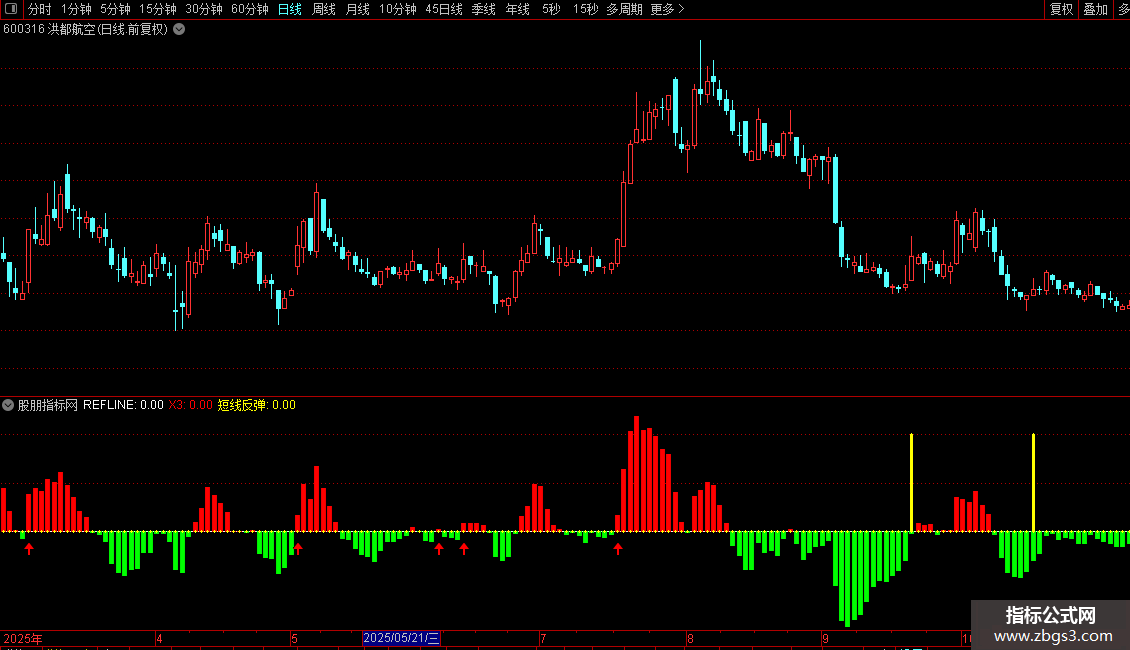 短线反弹:IF(CROSS(个股,9),10,0),STICK,LINETHICK3,COLORYELLOW;