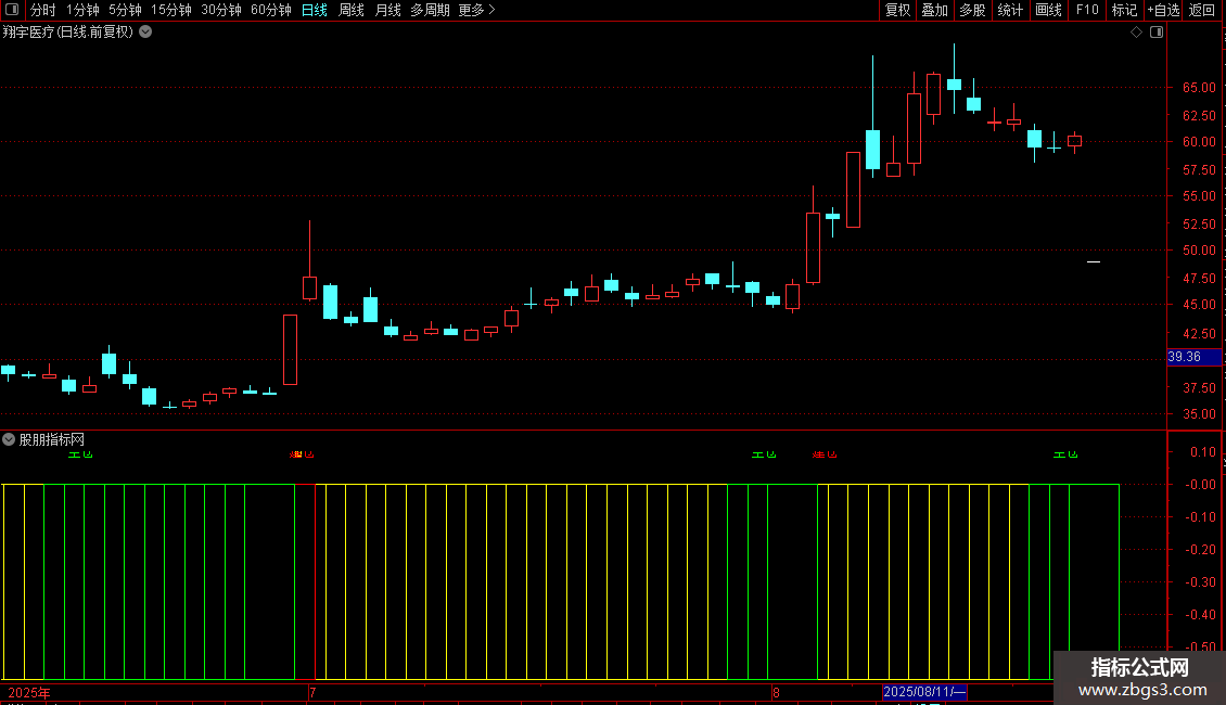 STICKLINE(DIF>0 AND DIF>DEA>0,0,-0.6,10,1),COLORYELLOW;