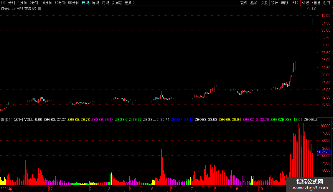 当满足条件ZBGSX_2>MAZBGSX_2时,在0和成交量(手)位置之间画柱状线,宽度为2,0不为0则画空心柱.,画红色