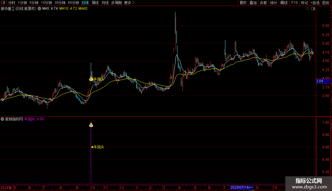 可视化提示清晰直观:主图与副图同步标注牛回头标识,无需紧盯指标,界面直观清晰。指标不含未来函数,信号可靠。