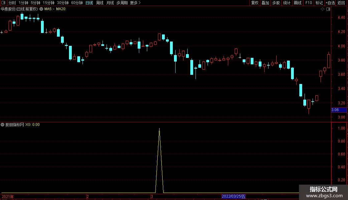 1. 通达信软件导入公式后,K线图中数值8(黄色标注)即为“跟庄进场”信号;