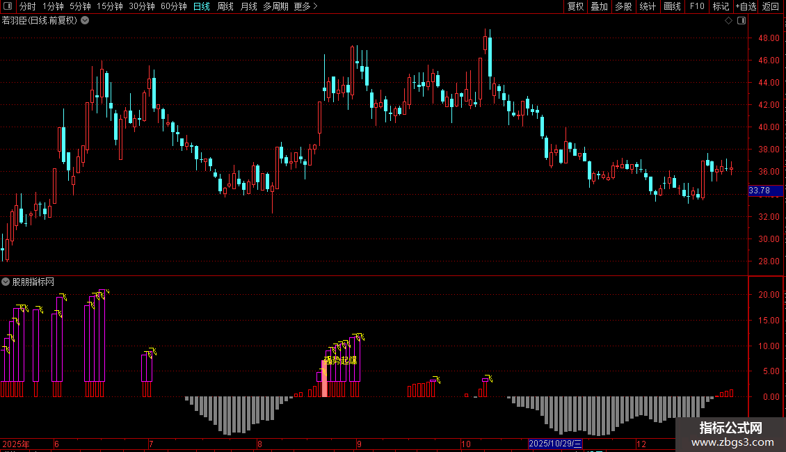 A:STICKLINE(强势起爆>REF(强势起爆,1) AND 强势起爆>0 AND 强势起爆< 3,强势起爆,0,2,1),COLORRED;