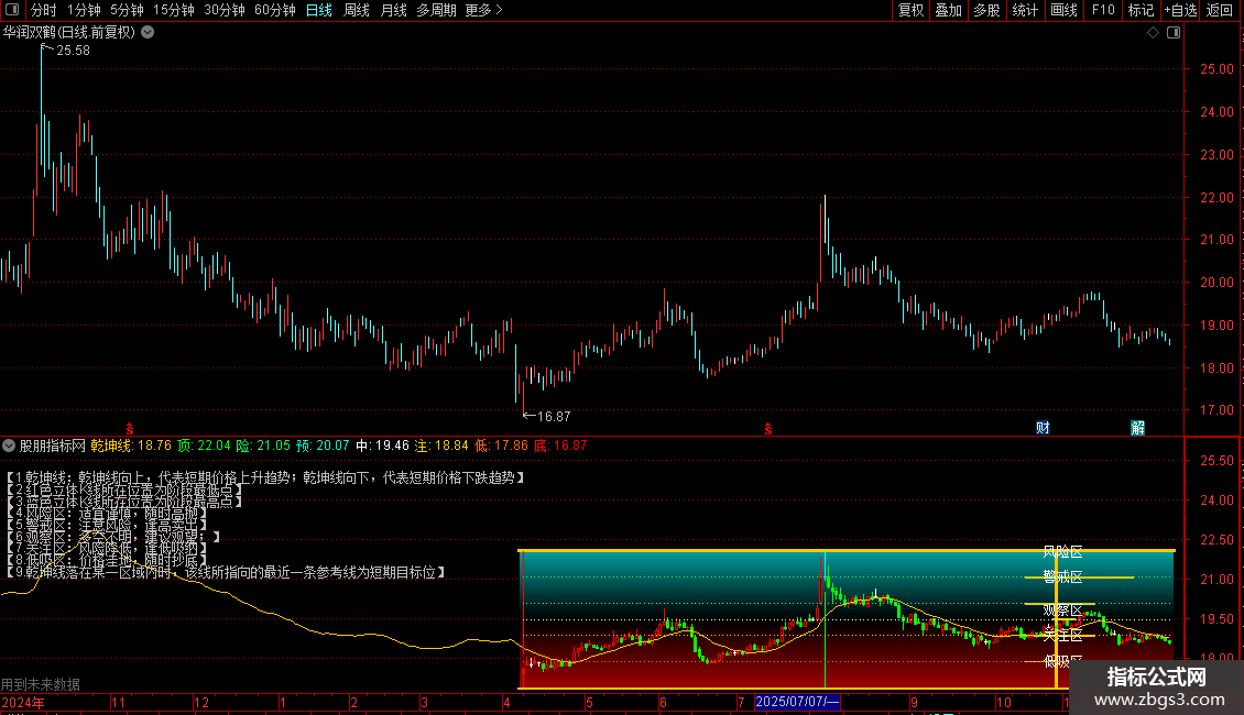 风险:=IFF(判断,REFDATE((天线-地线)*0.809+地线,DATE),DRAWNULL),POINTDOT,LINETHICK3,COLOR66FF00;