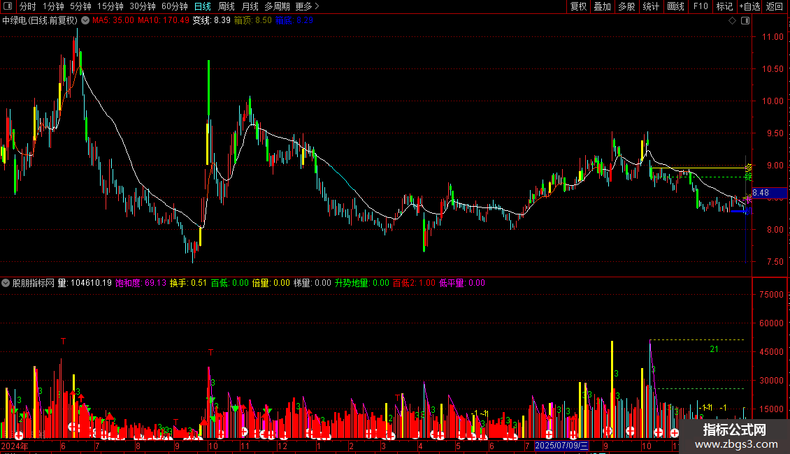 饱和度:IF(AMOUNT/CLOSE/(HHV(AMOUNT,20)/HHV(CLOSE,20))>1,1,AMOUNT/CLOSE/(HHV(AMOUNT,20)/HHV(CLOSE,20)))*100,NODRAW,COLORMAGENTA;