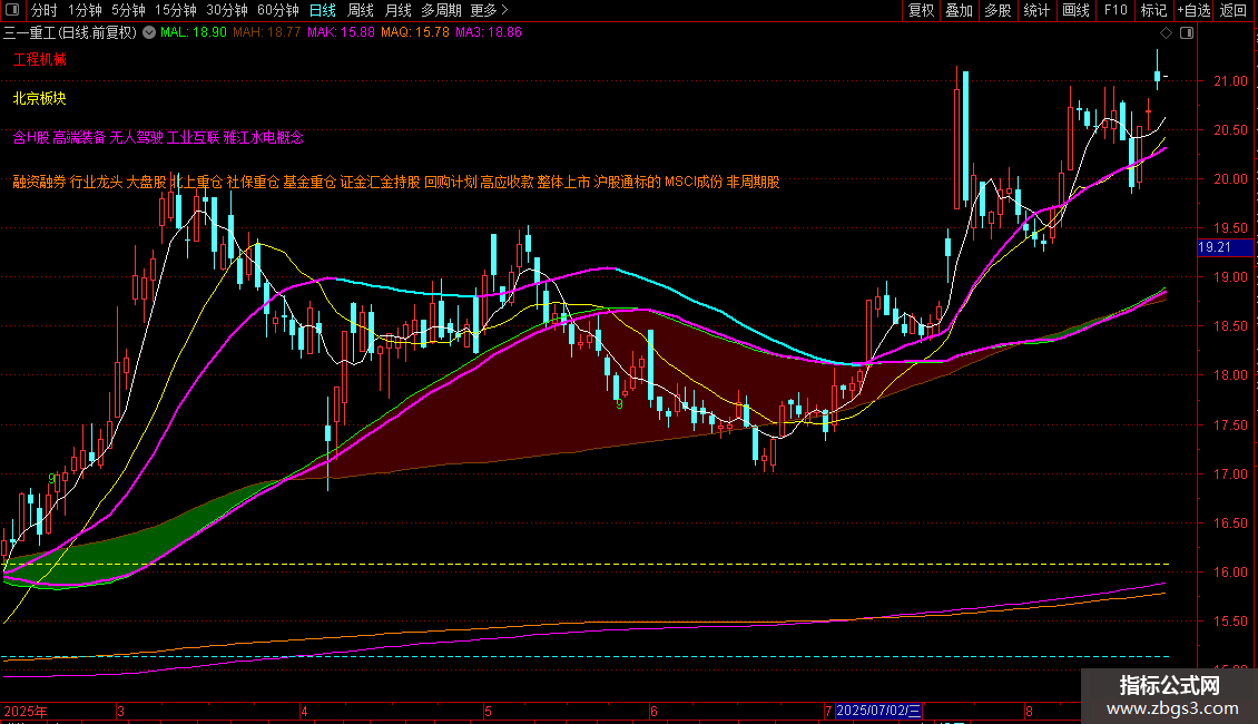 输出MA3:收盘价的60日简单移动平均,线宽为2,COLORFF00FF