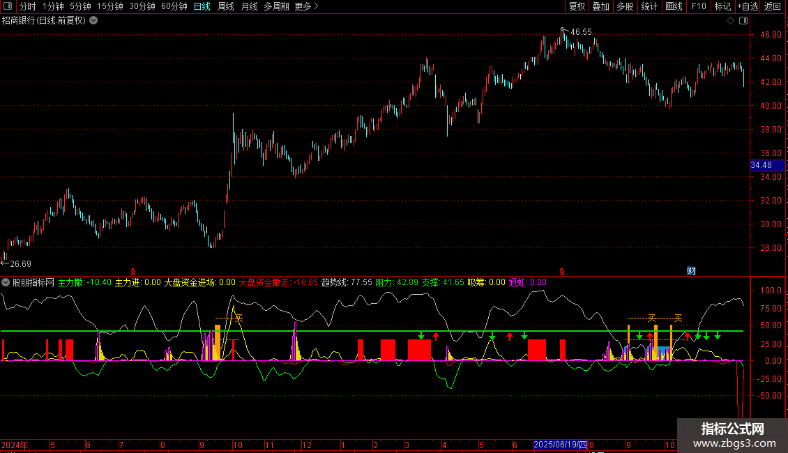 主力撤: IF(V4<=0,V4,0),COLORGREEN;