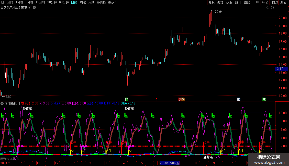 底背离:=REF(CLOSE,A11+1)>CLOSE AND DIFF>REF(DIFF,A11+1) AND CROSS(DIFF,DEA);