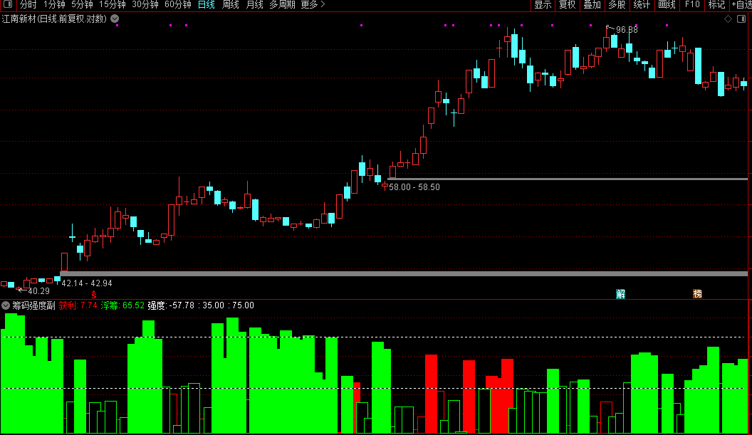 通达信【筹码强度指数】改编大智慧原创副图指标判断连板股票进出利器源码