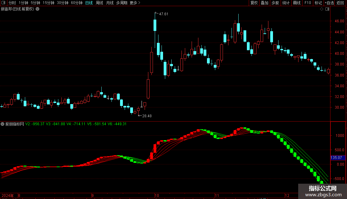 STICKLINE(V2<REF(V2,1),V2,REF(V2,1),3,0),COLORGREEN;