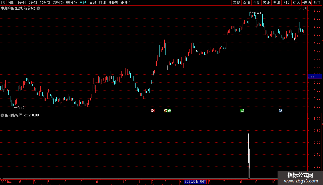 条件3:=工作线>REF(工作线,1) AND 五>十 AND 十>工作线 AND 涨幅%>3;