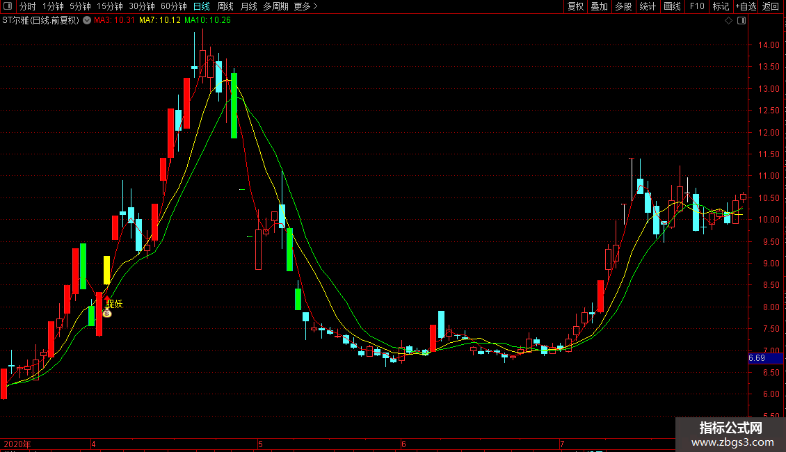 MA10:MA(CLOSE,10),COLORGREEN,LINETHICK1;