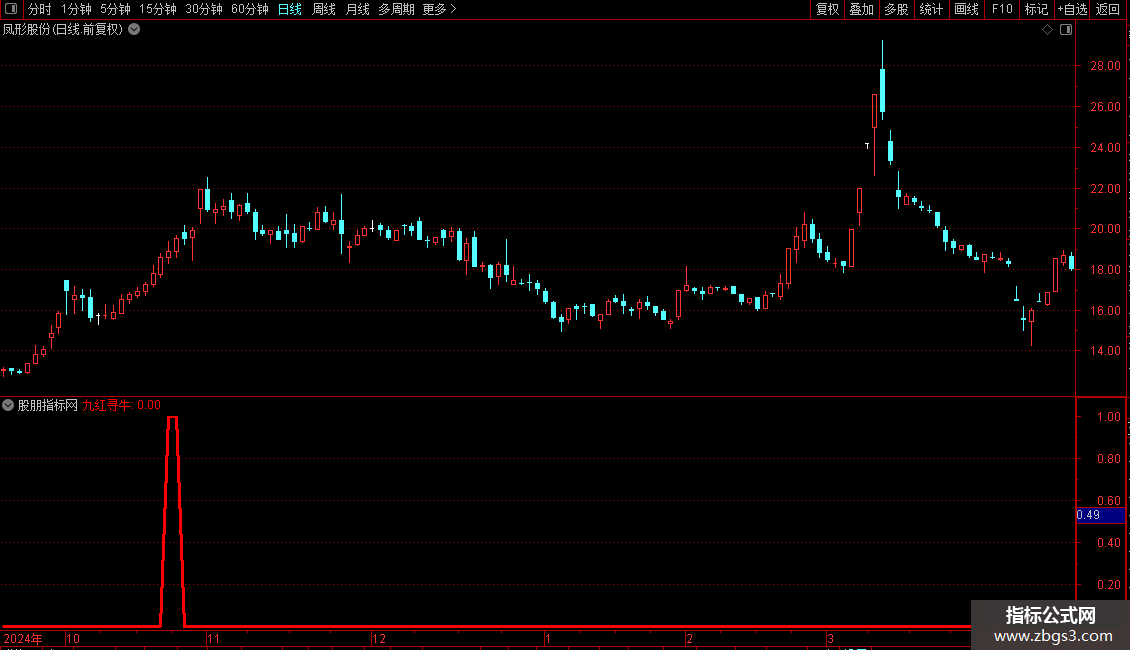 九红寻牛:C>O AND REF(C>O,1) AND REF(C>O,2) AND REF(C>O,3) AND REF(C>O,4) AND REF(HG1>O,5) AND REF(HG1>O,6) AND REF(HG1>O,7) AND REF(HG1>O,8) AND EVERY( NOT( (HG1=ZTPRICE(REF(HG1,1),0.1) AND NOT(NAMELIKE('ST') OR NAMELIKE('*ST'))) OR (HG1=ZTPRICE(REF(HG1,1),0.05) AND (NAMELIKE('ST') OR NAMELIKE('*ST'))) ),3),LINETHICK3,COLOR0000FF;