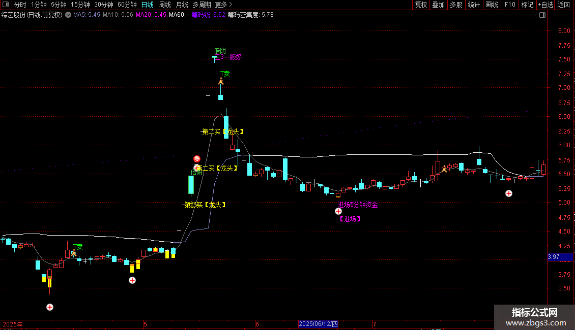 - 进场信号:基于ZIG转向函数,在阶段性低点标记“进场”提示