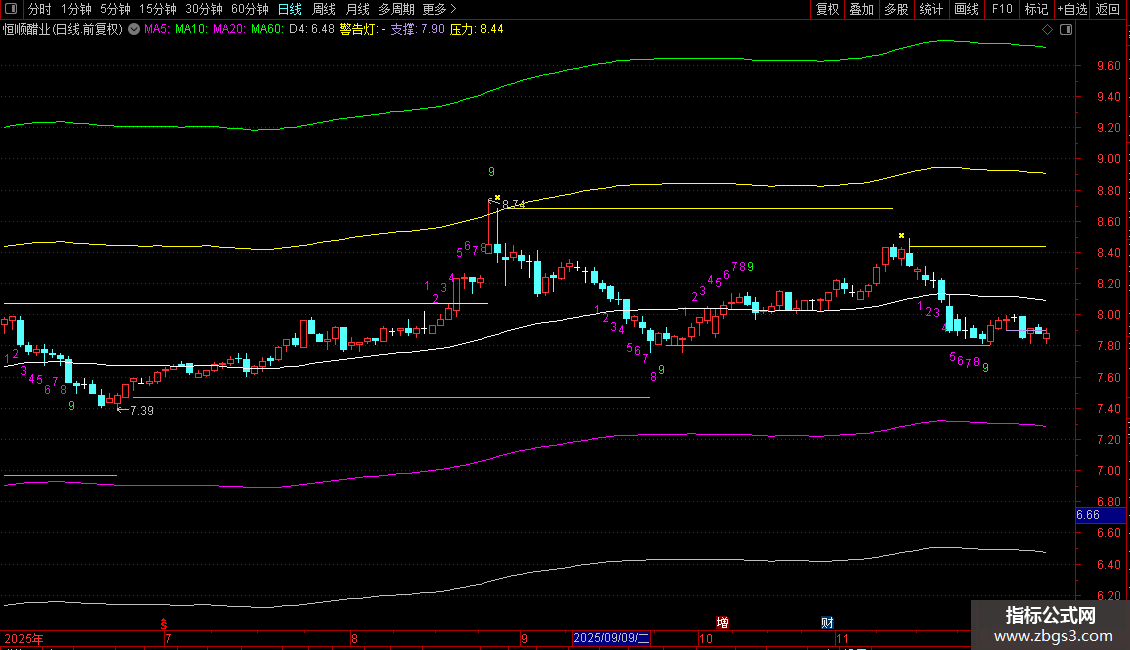 警告灯:IF(TJ,HIGH*1.008,DRAWNULL),CROSSDOT,LINETHICK2,COLORYELLOW;