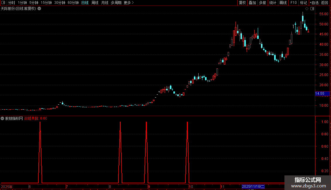 1.双雄共振指标是短线趋势与资金动能的双维度共振指标,核心功能是筛选出均线多头向上和资金主动进场的强势个股,精准捕捉短线上涨启动信号,适配短线、波段交易风格,尤其适合捕捉趋势初期的突破机会。