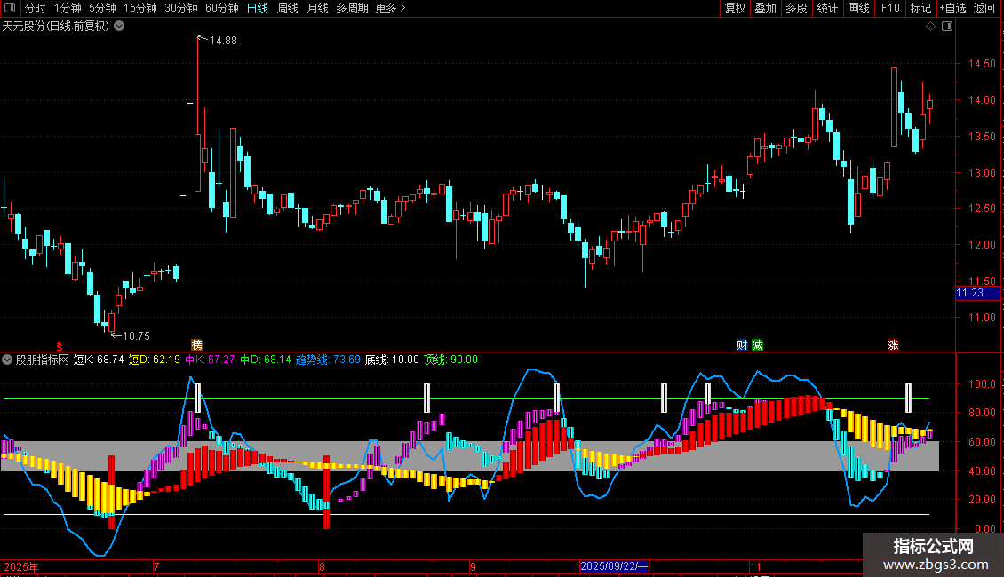短:=3*短K-2*短D,COLORRED,LINETHICK4;