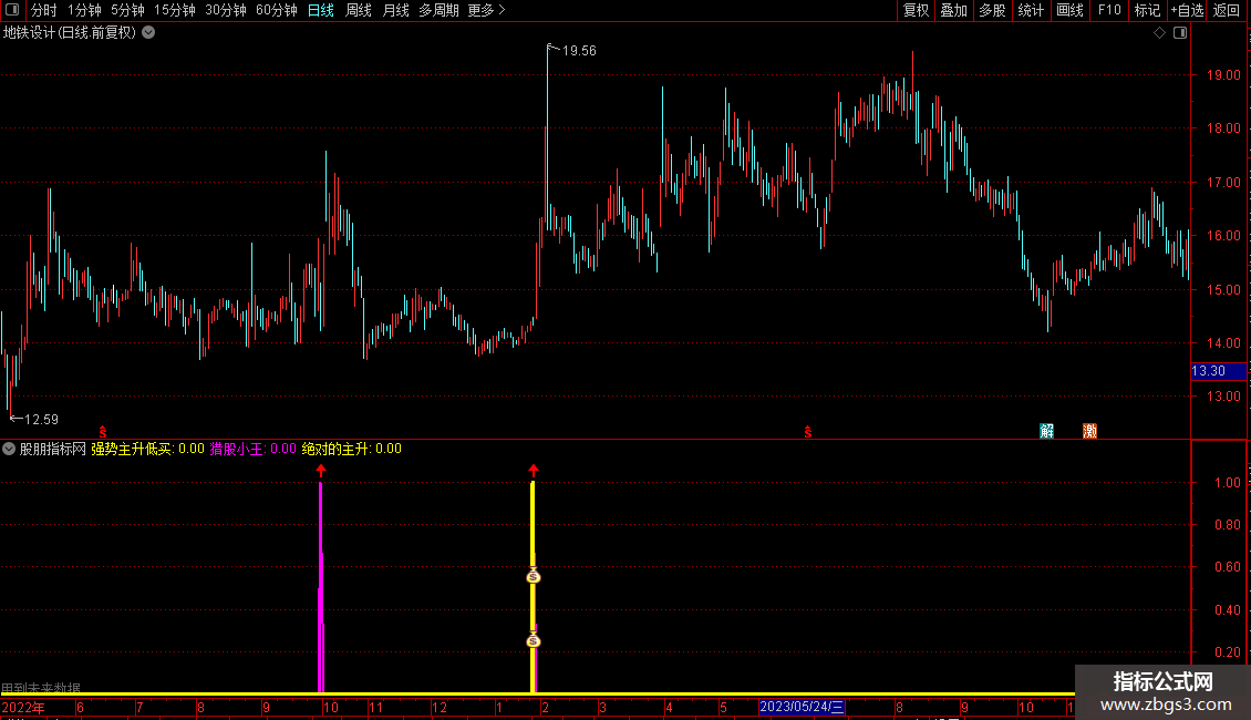 猎股小王:L<底部1 AND C<DSA AND 强势为王,COLORMAGENTA,LINETHICK2,LINESTICK;