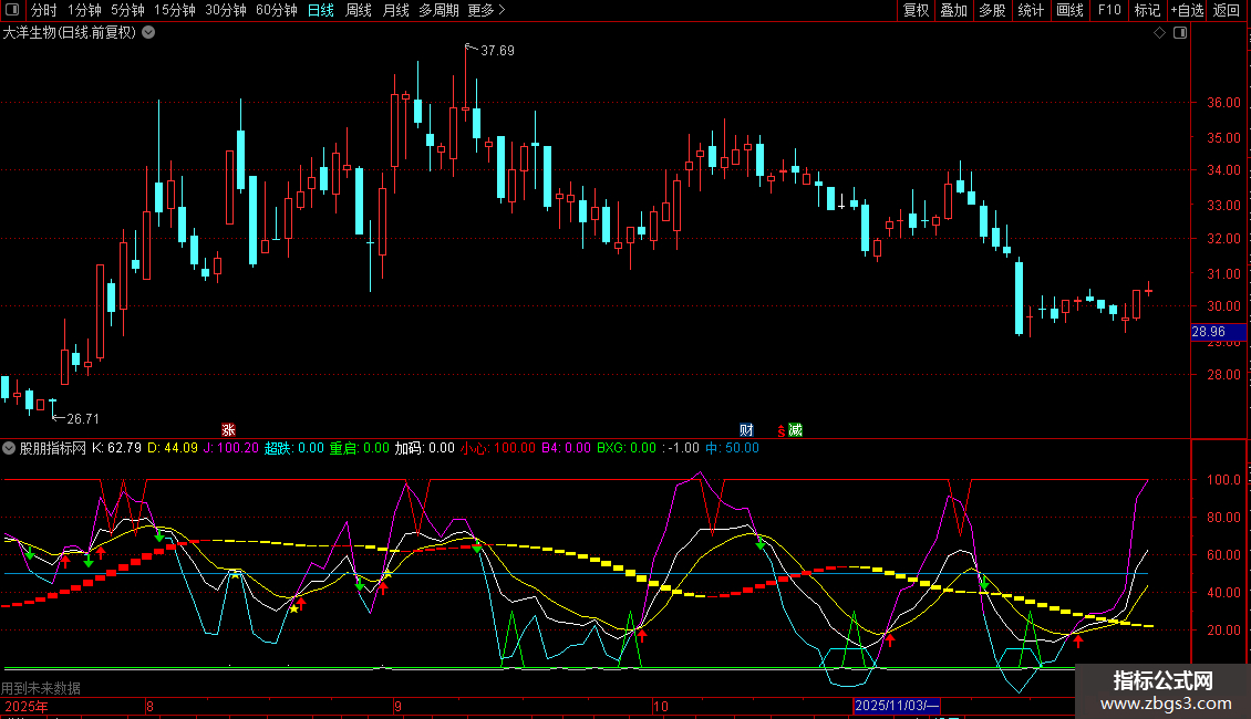 加码:IF(CROSS(J,REF(J+0.01,1)) AND BDDD AND BETWEEN(J,20,60),1,0),COLOR00FFFF,POINTDOT,LINETHICK0;