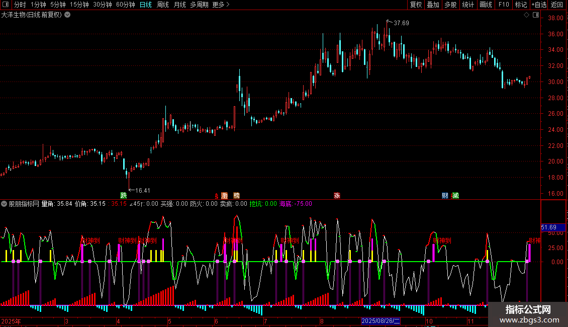 海底:IF(MA5角度<0-75,0-50,0-75),COLORFF00FF,LINETHICK2;