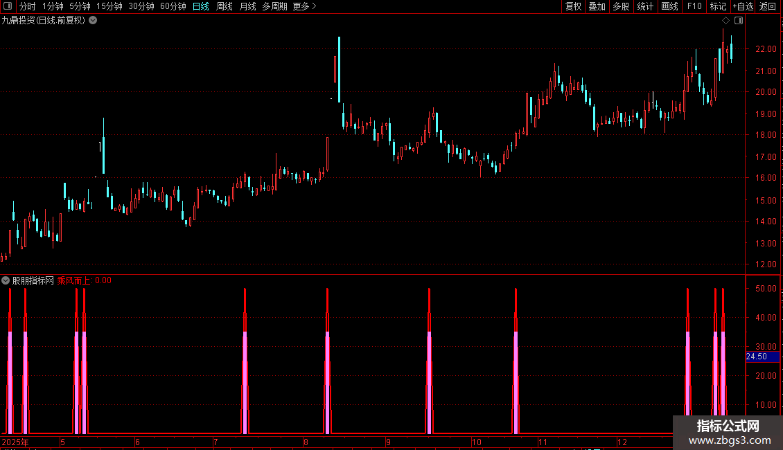 乘风而上:IF(BARSLASTCOUNT(HG22)=1 AND HG23,50,0),COLOR0000FF,LINETHICK2;