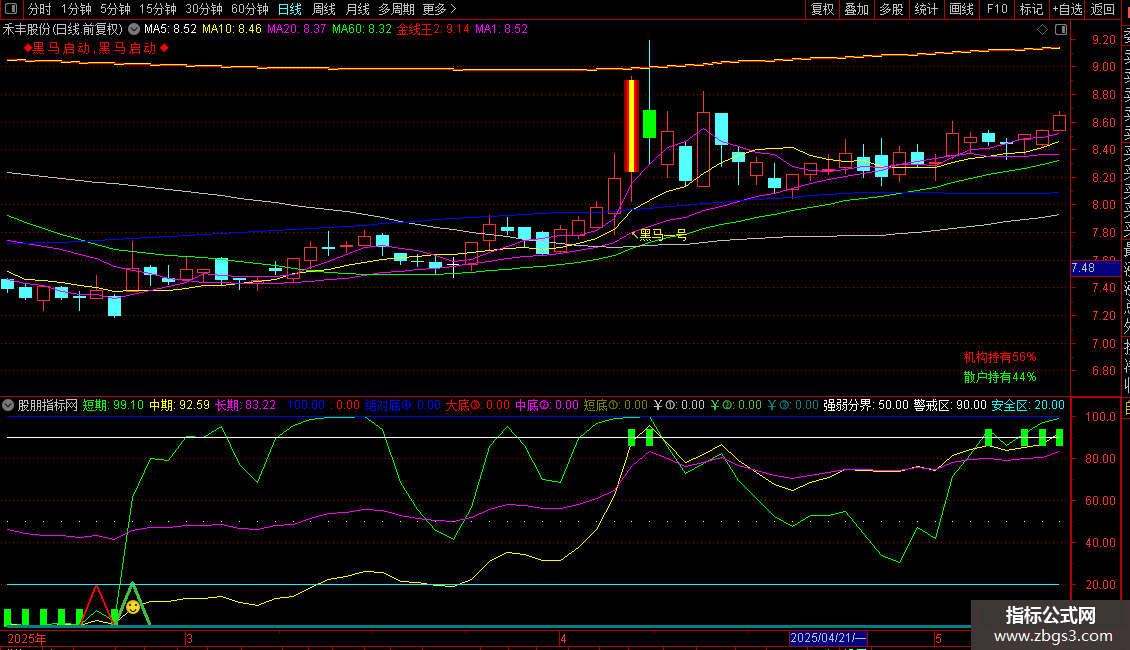 黑马启动+短底强升追“双剑合一预警指标 通达信 贴图 含主图和副图
