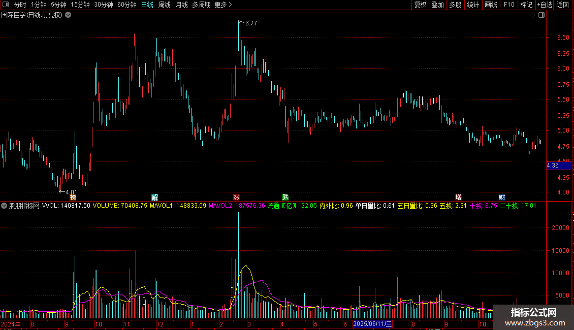 输出VOLUME:成交量(手),VOLSTICK