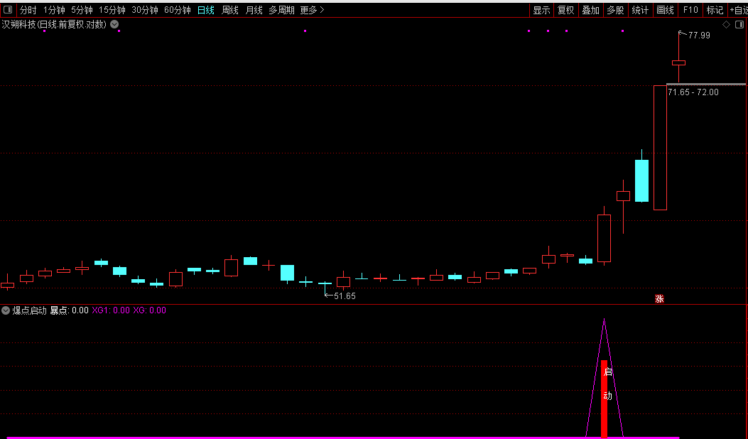 通达信某音卖1100的〖爆点启动〗副图/选股寻找短期内价格大幅上涨的强势源码