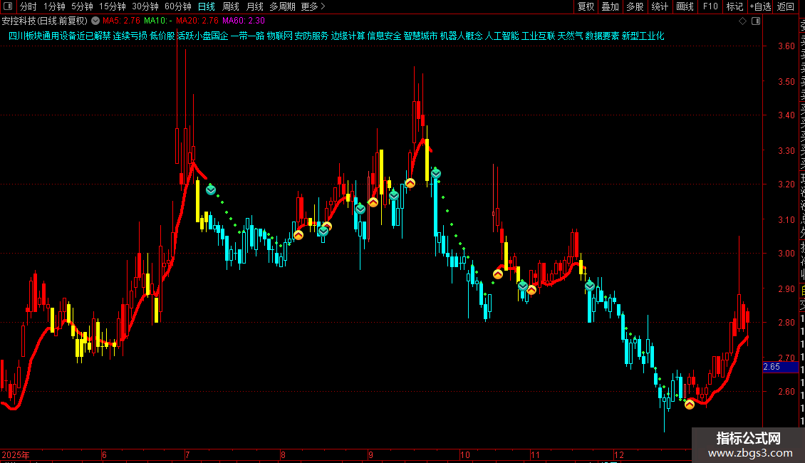 上拐:IF(VAR7< VAR9,VAR7,DRAWNULL),COLOR0000FF,LINETHICK4;