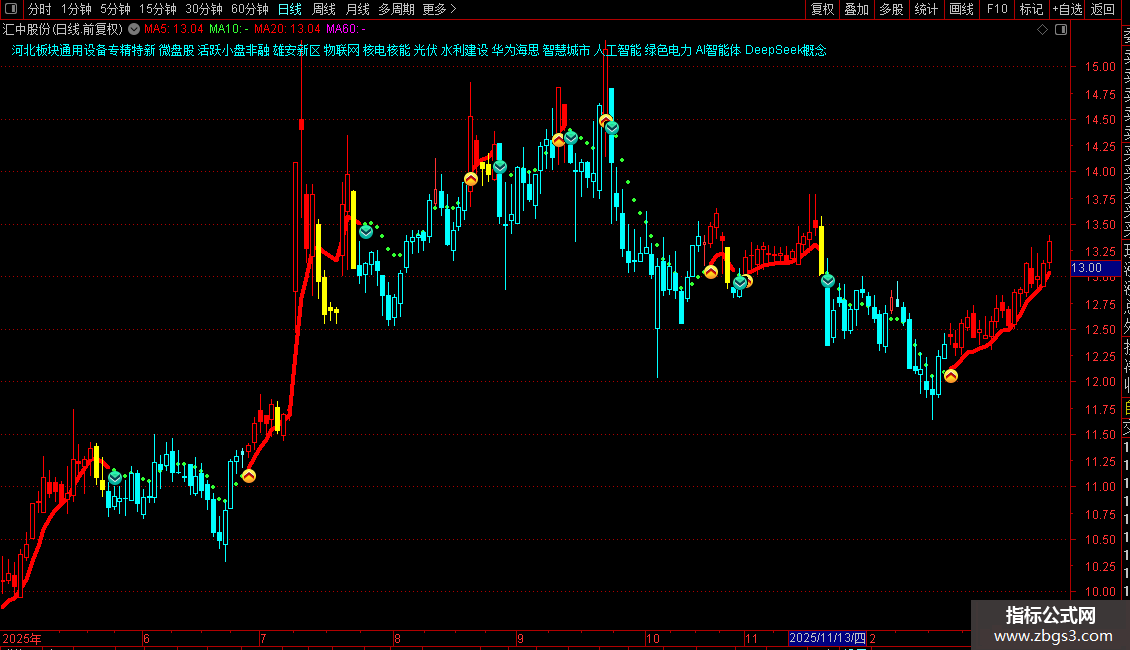 下拐:IF(VAR7>=VAR9,VAR7,DRAWNULL),COLOR33FF33,POINTDOT,LINETHICK4;