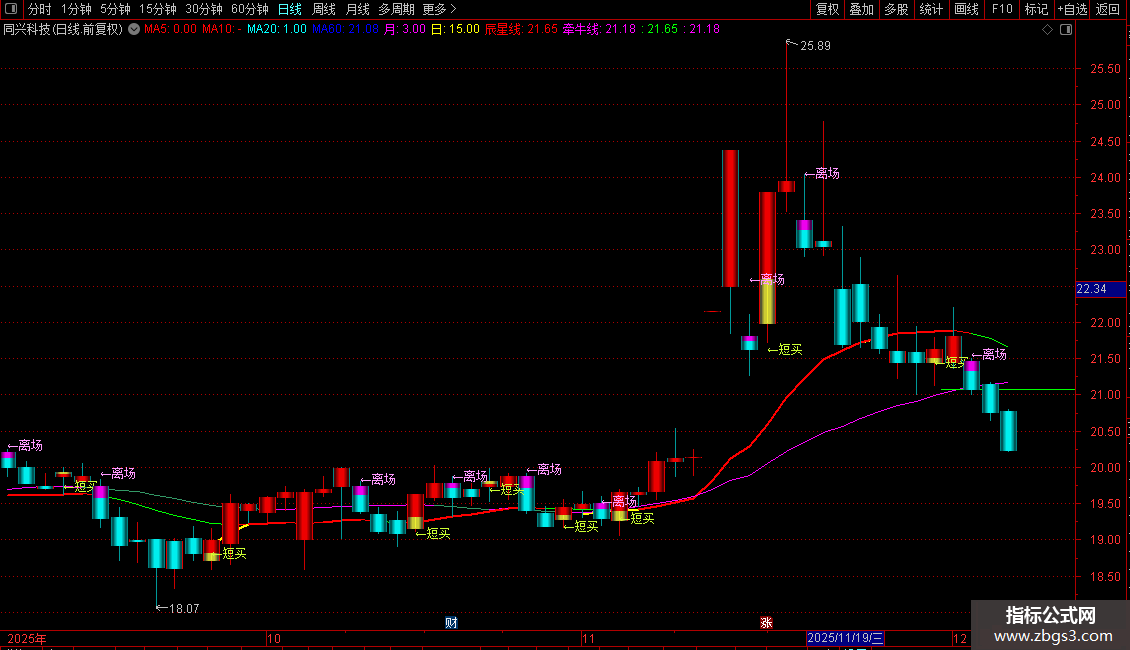 今离场价:REF(离场,1)COLOR0000FF,NODRAW;