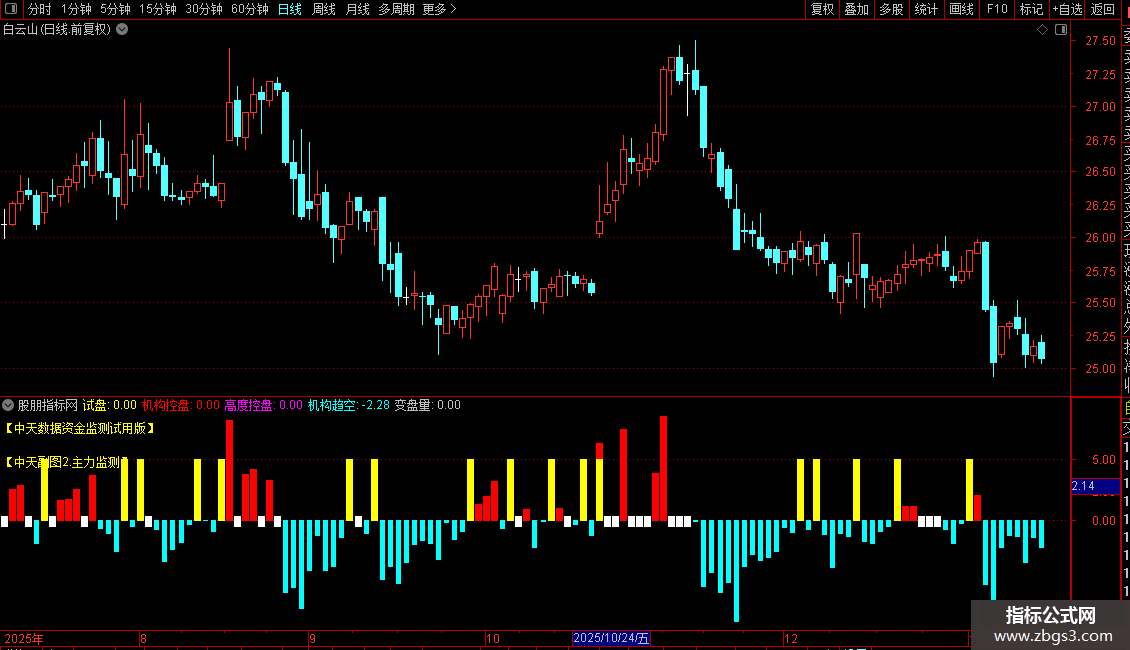 DRAWTEXT_FIX(1,0.0,0.18,0,'【中天副图2.主力监测】'),COLORYELLOW;