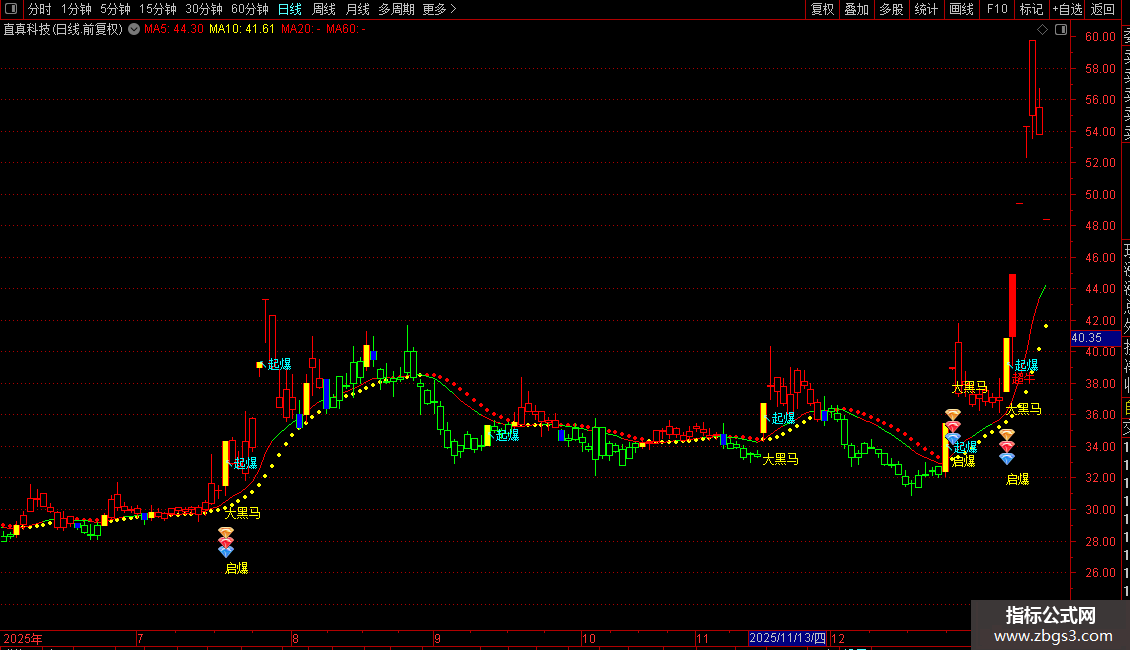 2. 关注黄色/红色柱状K线(代表多头主导)及“起爆”类文字提示;